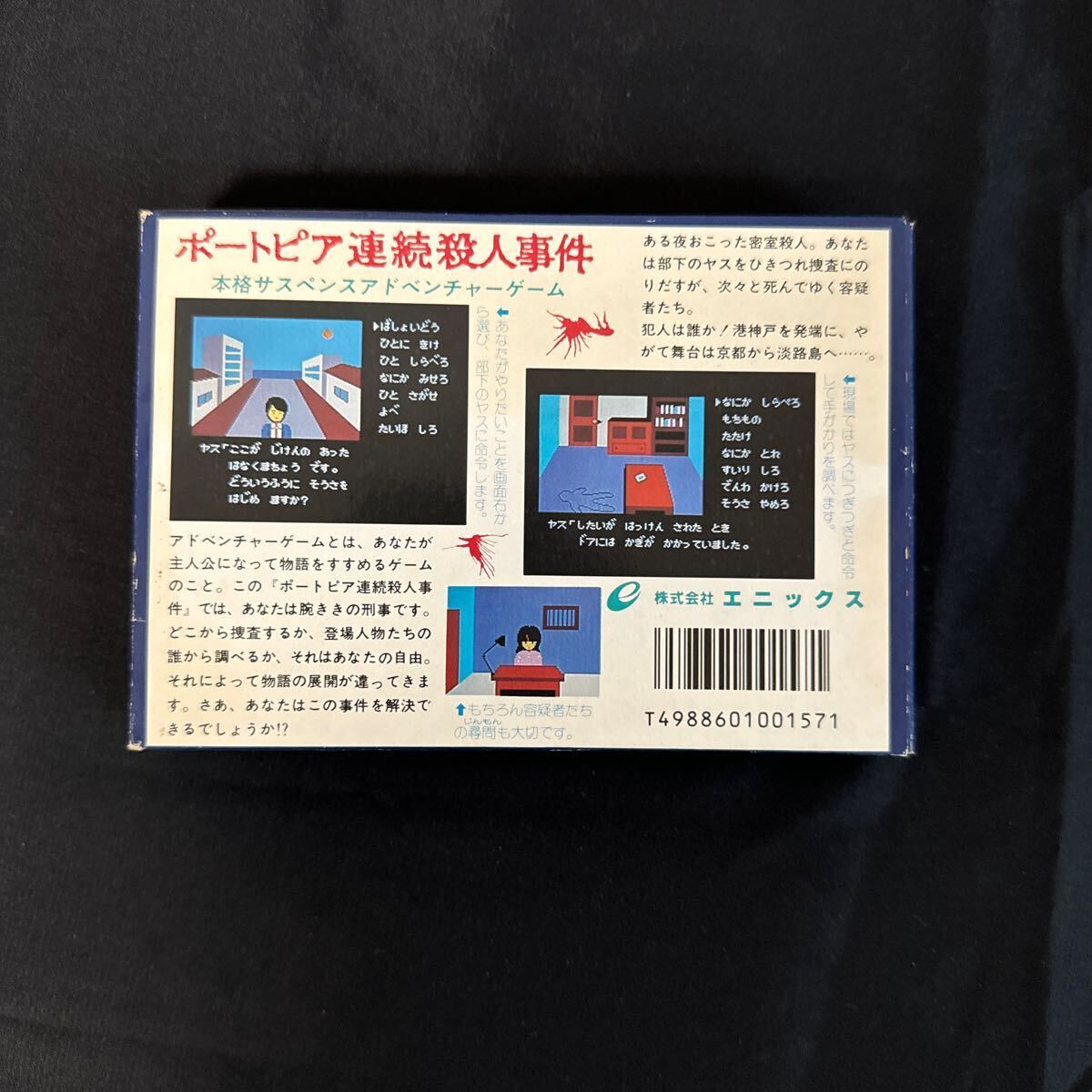 物語は神戸市中央区花隈町から始まり、被害者は「ローンやまきん」の社長・山川耕造。彼の死体が密室で発見され、プレイヤーは証拠を集めながら事件の真相に迫ります。ゲームはコマンド選択型で、当時のファミコン初のアドベンチャーゲームとして斬新でした。特に、相棒のヤスのユーモラスなセリフが印象に残ります。