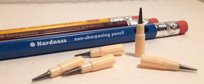 ロケット鉛筆が登場したのは、1960年代のこと。見た目は普通の鉛筆に見えますが、実は中に替え芯が入っていて、押すだけで芯が出てくる仕組みになっています。これが登場することで、鉛筆を削る手間が省け、いつでもスムーズに書けるというのが大きな魅力でした。
