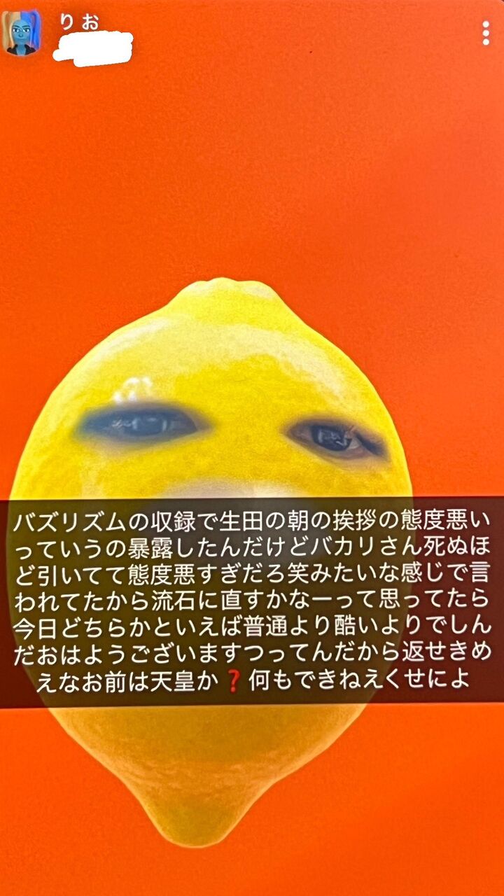 「(生田)おはようございますって言ってんだから返せ*な お前は天皇か? 何もできねえくせによ」